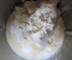 Diese Mischung ca. 10 Min. abkühlen lassen und den Frischkäse und den Joghurt hinzufügen.
