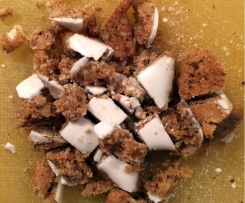 7. Die restlichen Zimtsterne auf 6 Portionen aufteilen und grob zerkleinern