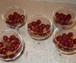 "Mixtopf geschlossen" und 2 min Stufe 4 zu einer geschmeidigen Masse rühren und über die Kirschen geben. 2-3 Std. ziehen lassen. Kurz vor dem servieren mit Kakaopulver oder gemahlenen Nüssen und Zimt besteuen.. Viel Spass beim nachmanchen lasst es Euch schmecken