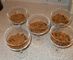 "Mixtopf geschlossen" und kurz 2-3 sek. Stufe 5 in eine Auflkaufform oder Stielgläser ( 4 - 6 ) verteilen. Sauerkirschen abtropfen lassen, Saft auffangen. Kirschen und gut die Hälfte des Saftes über die Lebkuchen gießen. Die Restlichen Zutaten bis auf den Kakao, Nüsse und Zimt in den