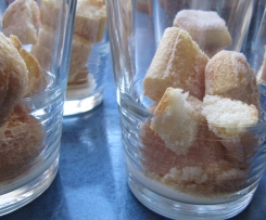 Je einen Löffelbiscuit in Stücke brechen und in die Gläser geben.