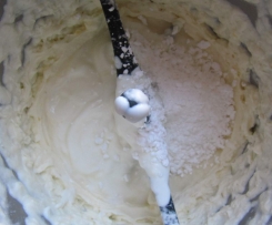 .... und 10 Sek. / St. 3 verrühren. Den Rühraufsatz entfernen und die Creme mit dem Spatel nach unten schieben.