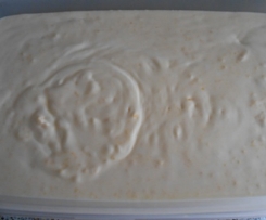 Nun die Pfirsichmus 10 Sec/Stufe 4 unterziehen und alles in eine gefrierfähige Schüssel geben und einfrieren! Gut über Nacht, besser noch 24 Std.