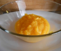 Die Dosenpfirsiche gut abtropfen lassen . Im Anschluß zu Pfirsichmus schlagen