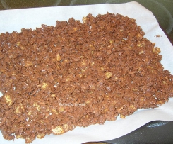 Min. / 60° / St. 3 schmelzen.150 g Cornflakes und 100 g gestiftete Mandeln zugeben, bei