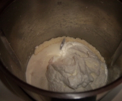 "Mixtopf geschlossen" 5 Sek./ Stufe 8 ./ zerkleinern und dan mit der Sahne 5 Min ./ 50 Grad ./ Stuf 3 schmelzen.+++Quark in den Topf