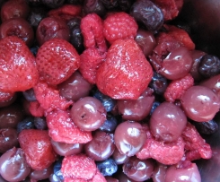 - 1000 g gemischtes Obst (z. B. Kirschen, Heidelbeeren, Himbeeren, Erdbeeren, Johannisbeeren, Brombeeren)