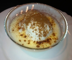 Die Creme in Schälchen füllen, Eiweisshäubchen darauf setzen und mit Zimt bestreuen. Kalt stellen! Ein super leckeres Dessert aus meiner Kindheit!