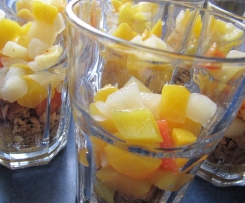 Leicht zubereitet, schmeckt immer. Habe es schon einige Male zubereitet und wurde vion den Gästen gelobt. Als Obst verwende ich selbstgemachtet Apfelmus. Danke fürs Rezept.