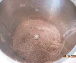 Kuvertüre, Kakao, Zucker, Vanillezucker und Salz in den Mixtopf geben und 10 Sek./St. 10 mahlen.