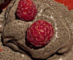 Wie auf dem Bild zu sehen, gab's das Eis auf einem Himbeerspiegel und einem leckeren Triple-Choc-Muffin.