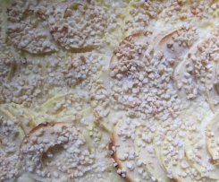 "Mixtopf geschlossen" über die Apfelscheiben gießen und mit den Mandeln bestreuen.