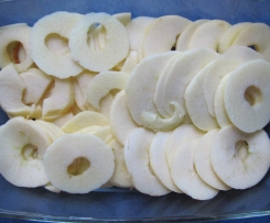 Die Äpfel schälen, entkernen und in dünne Scheiben schneiden (man kann sie je nach Sorte auch ungeschält lassen oder im