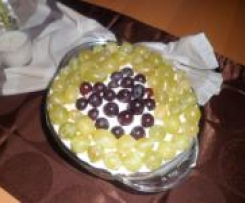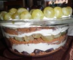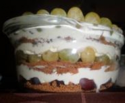 Wer mag kann auch eine Schicht mehr stapeln... dann eben die Cookies und Creme dritteln und evtl mehr Trauben verwenden.....