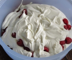 Der Sahnequark schmeckt natürlich auch ganz hervorragend mit Heidelbeeren oder Erdbeeren.