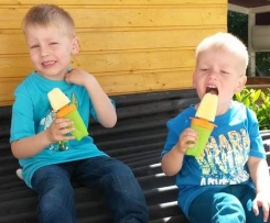 Man kann die Mischung auch in kleine Eisformen, oder wie auf dem Bild in Lutscher Formen abfüllen und als Eis am Stiel genießen!!! Geht natürlich noch einfacher und den Kindern schmeckt es so am besten...