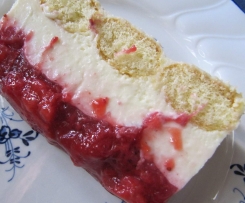 Hat uns gut geschmeckt. Einige Kleinigkeiten müsste man vielleicht noch ausfeilen. Vorab, die Creme war wirklich lecker. Die auf einem Kuchen könnte ich mir auch gut vorstellen. Leicht gemacht ist sie noch dazu. Da gab es keine Probleme. Auch die Erdbeerschicht war gut. Bekommt man auch im Winter, ist nicht zu süß und damit ein guter Kontrast zur Creme. Allerdings würde ich mehr Erdbeeren das nächste Mal machen.