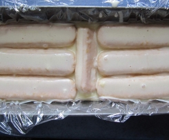 Die Löffelbisquit waren mir persönlich zu hart. Sie ziehen in der Creme nicht richtig durch. Vielleicht müsste man die Creme länger stehen lassen. Wir aßen sie nach etwa sieben Stunden. Da war die Lasagne bereits fest und konnte prima gestürzt werden. Ob die Bisquits dann noch nachziehen würden, weiss ich nicht. Nächstes Mal werde ich sie vielleicht kurz in etwas Saft tunken.