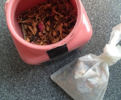 Das Glühweingewürz in den Teebeutel füllen und verknoten. s.Bild