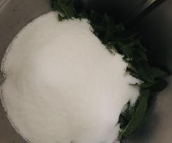 - Minzblätter , Zucker in den Mixtopf einwiegen .