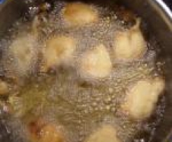 Stufe 3 unterrührenAuf dem Foto seht ihr Bananenstücke, die wir mit diesem Teig fritiert haben - anschließend zum Süßen flüssigen Honig darüber (wie beim Chinesen).