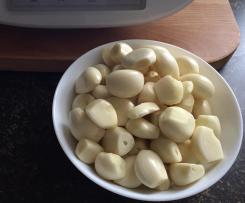- Knoblauchzehen schälen (ich gebe sie dafür kurz in die Mikrowelle, dann geht es etwas einfacher - alternativ Mono-Knoblauch verwenden).