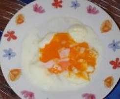 Ergebnis ein kompaktes Eigelb - innen ganz cremig, und ein lockeres Eiweiß - aber nicht durchsichtig glibberig!