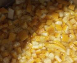 @ Tyrion: die Schalenwürfel kocht men ein mit 300 gr. Zucker und 300 gr. Wasser