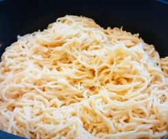 - Kässpätzle: Die fertigen Spätzle zusammen mit geriebenem Käse in der Pfanne schwenken