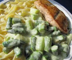 Sehr lecker, ich habe den Lachs weggelassen und nur die Nudeln mit dem Spargelragout gemacht.