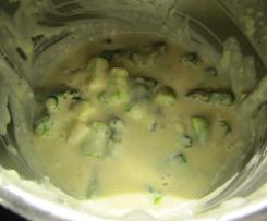 "Mixtopf geschlossen" geben und 5 Sek. / St. 5 zerkleinern. Mit dem Spatel nach unten schieben. Die Butter hinzufügen und 2 Min. / Varoma / St. 1 dünsten. - Garflüssigkeit, Mehl, Frischkäse und Brühpulver hinzufügen .....