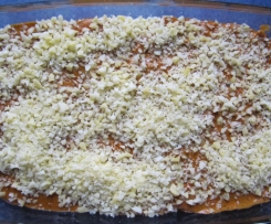 - Den Fisch mit der Soße begießen und mit dem Käse bestreuen.