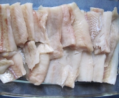 - 750 g Fischfilet (ich hatte Seelachs), TK auftauen lassen und trocken tupfen