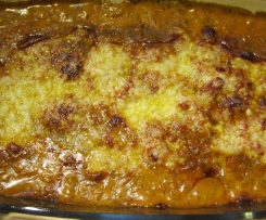 - Den Auflauf ca. 45 Minuten bei 180 °C Ober- und Unterhitze (ohne Vorheizen) überbacken. Bei uns gab es Reis und Buttergemüse dazu.