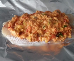 Ein ganz leckeres und tolles Gericht. Da ich kein Tomatenmark hatte, nahm ich Aywar. Und weil ich keine Alufolie benutzen wollte, habe ich den Fisch für ca. 30 Minuten bei 200 Grad in einer Auflaufform gebacken. Bei uns gab es Kartoffelpüree dabei. Super, am liebsten 10 Sterne.