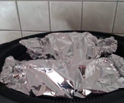 6. Alufolie zu Päckchen verschließen und in den Varoma und -einlegeboden geben.