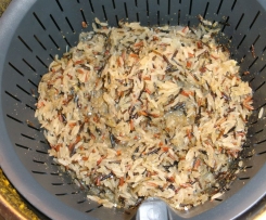 Reis und Fischfilet beiseite stellen, etwas abkühlen lassen