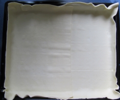 Den Blätterteig auf das Blech legen und ca. 10 Minuten im heißen Ofen vorbacken.
