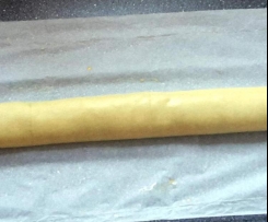 - Die Rolle mit einem scharfen Messer in ca. 7 cm breite Stücke schneiden.