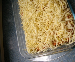 "Mixtopf geschlossen" geben. Kurz auf St. 6 verrühren. Dann 6 1/5 Min. / 90° / St. 4 erhitzen und über den Käse gießen.Im Backofen bei 180° ca. 50 Min. überbacken.
