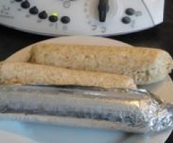 3 Quadratische Alufolienstücke abtrennen, die Masse aufteilen u. als "Wurst" aufrollen, so dass sie noch in den Varoma passen.