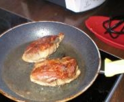Dann die Entenbrust ca. 2-3 Minuten frittieren, oder kurz auf beiden Seiten anbraten.