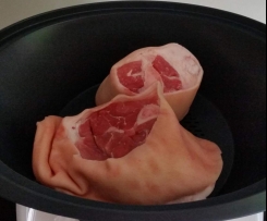 Haben heute das leckere Eisbein ausprobiert im TM 6 und es war einfach traumhaft. Nach einer Stunde das Sauerkraut frisch mit zum Eisbein in den Varoma und weitere fünfzig Minuten gegart. Das Eisbein nach der Stunde umgedreht es waren 1480 Gramm und dann mit dem Sauerkraut fertig gegart. Mein Mann war begeistert und ich auch. Reicht für zwei Tage. Wir haben Kartoffeln dazu gekocht. Das Eisbein war gepökelt und war sehr lecker. Koche ich bald wieder. Danke für das Rezept