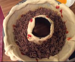 Was für eine Wahnsinnsarbeit,bei mir war der Teig leider sehr klebrig.Hab ihn versucht auszurollen ,dann zu füllen und dann in die Form zu bekommen.Sag mal so,das war wohl nix.Geschmacklich nicht übel,aber der kommt leider nicht in die Sammlung,sorry!
