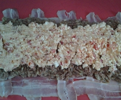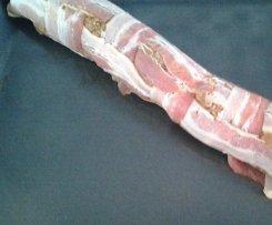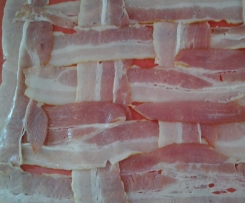 Aus dem Bacon ein Geflecht machen. Am besten auf einer Silikon-Backunterlage oder einem Küchentuch.
