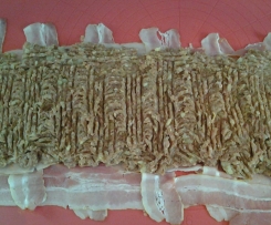 Das Hack auf dem Bacongeflecht verteilen. Oben und unten einen Rand lassen.