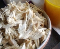 3. Hähnchenteile etwas abkühlen lassen und Fleisch auslösen.