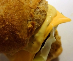 Wem das alles jetzt zuviel Arbeit macht, kann sich ja auf eine Burger-Variante beschränken und die Bürli-Brötchen und Patties größer backen / braten. Ich hatte alle Saucen schon eingekocht - so war's nicht mehr viel Arbeit.
