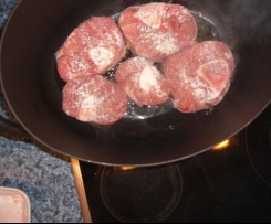 In den Bräter das Öl geben und von beiden Seiten das Fleisch schön braun anbraten.