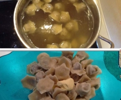 Pelimeni mit Weiterverarbeitung des restlichen Teiges